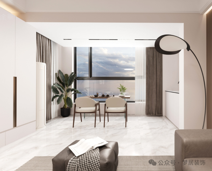 阳台封窗入户,设置品茗区,清新舒适的绿植让阳台空间不显单调。闲坐阳台,一束光、一本书、一杯茶、便是一个不受打扰的澄静世界,解锁繁忙都市生活里的减压之境。