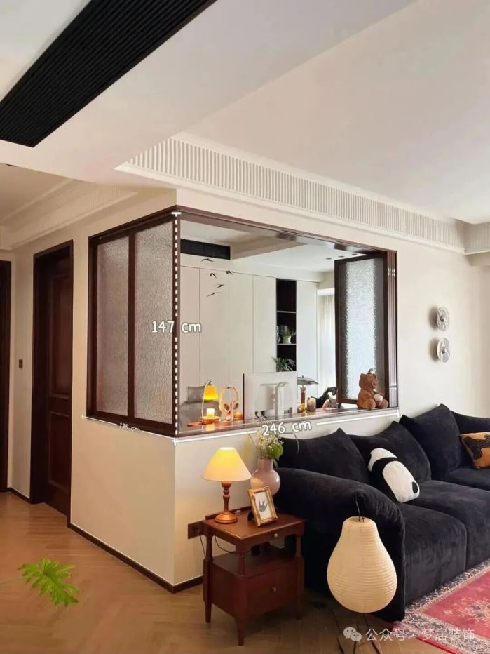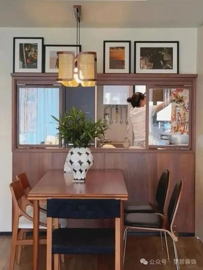 有了这扇室内窗,整个屋子通透又敞亮,做饭时也能和客餐厅的家人搭话,煮菜的间隙聊几句家常,烟火气里满是温馨。
