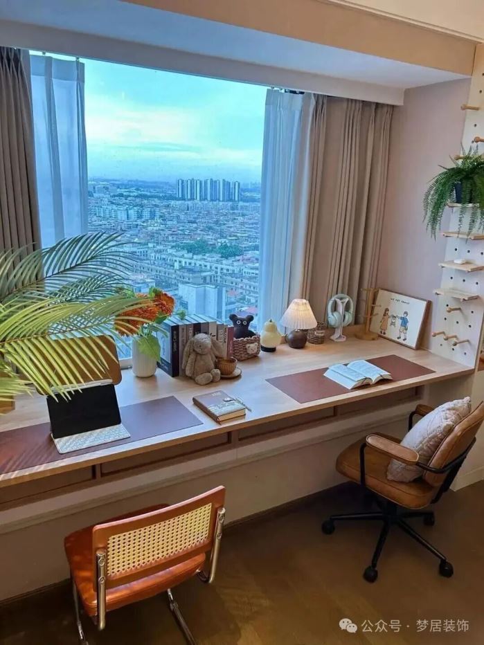 坐在书桌前,抬眼就能看到窗外的风景,让办公和学习都更惬意~