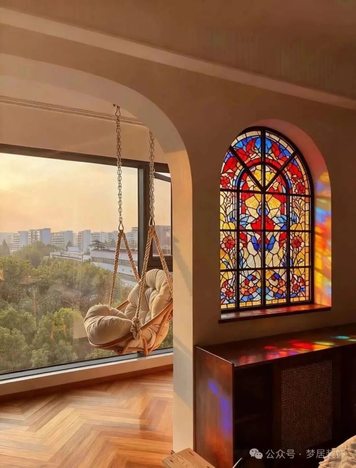 普通窗户平平无奇,拱形玻璃窗形成一道风景线。