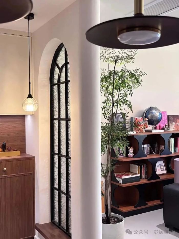 玄关处的拱形窗隔断设计,让回家的仪式感拉满。