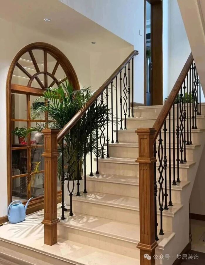 楼梯口,隔窗透景,美式乡村复式的角落美翻。