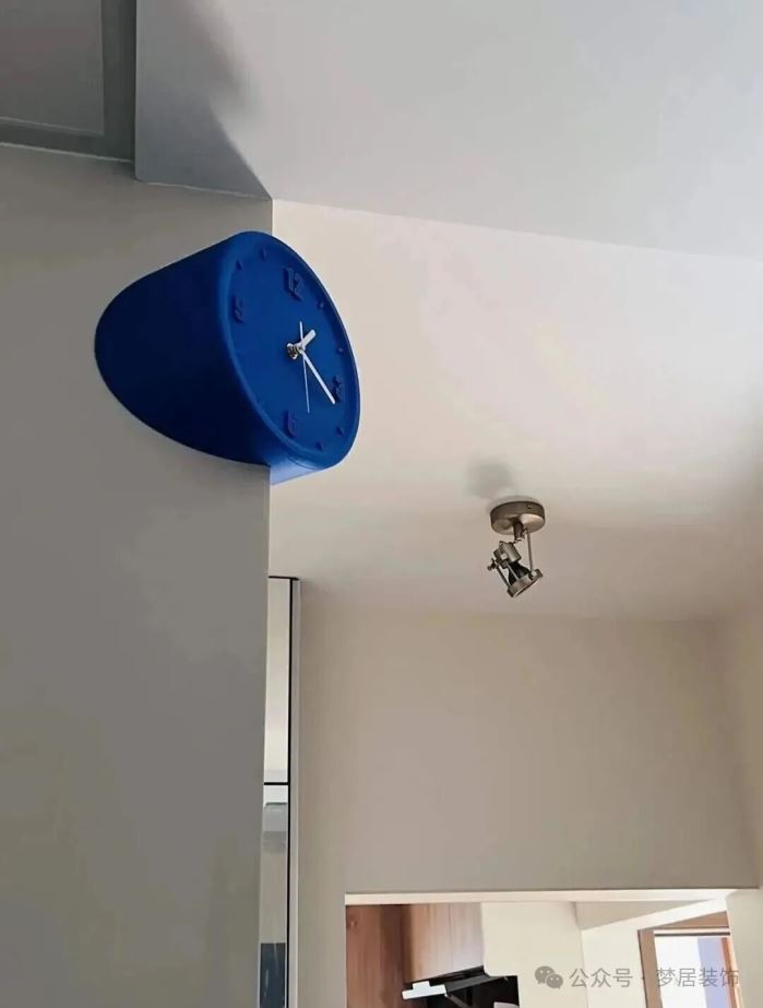 克莱因蓝转角钟,让墙面形成一个很有意思的角落。