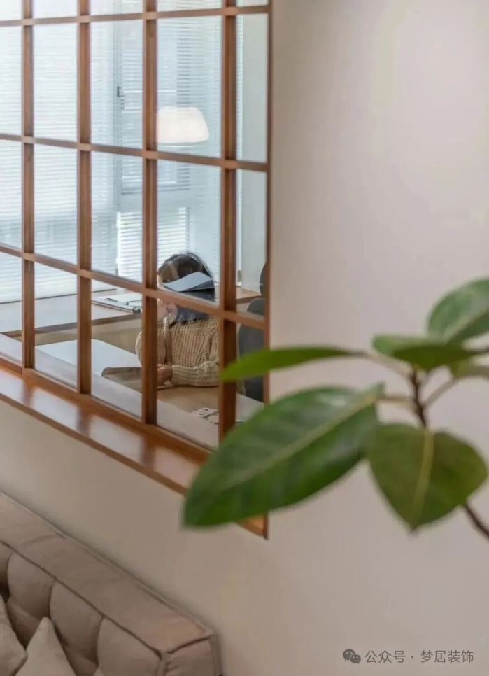 次卧砸掉非承重墙,换成半墙+玻璃窗设计,让客厅直接显大20㎡。