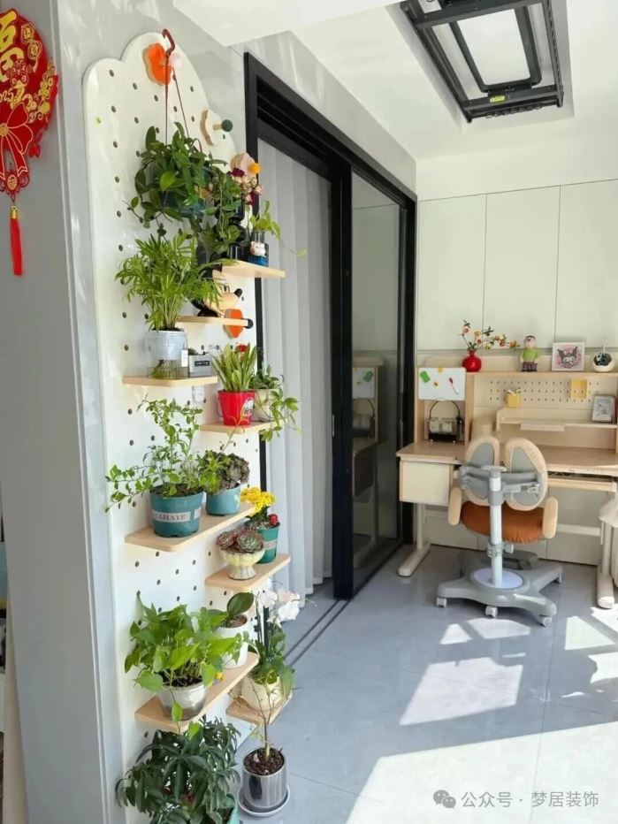 定制一块洞洞板用来放置绿植,每天阳光照在绿植墙上好有氛围感, 阳台小森林轻松拥有,真的好治愈呀!