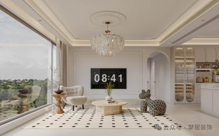 法式设计的优雅让客厅的浪漫与松弛双向奔赴。柔和奶油色调+精简线条打造出松弛又高级的氛围。